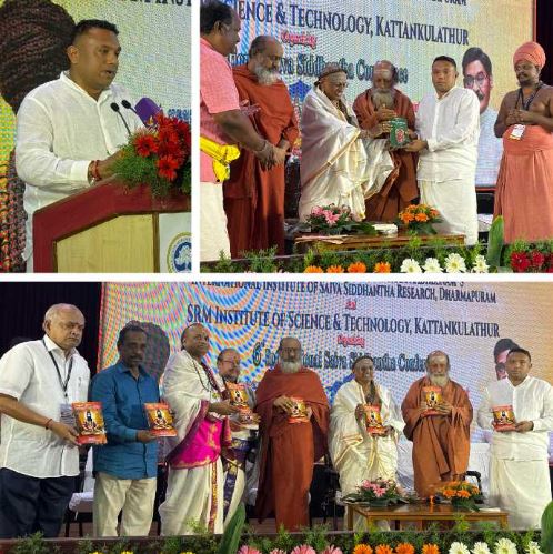 President of MAHIMA and Trustee of Sri Maha Mariamman Kuil Dhevasthanam Kuala Lumpur received the first book of ‘Abirami Anthathi’, a book by Pa. Ayyasamy from Mayiladurai. The book was launched by Thirukkayilaya Parambarai Velakkurichi Athinam.